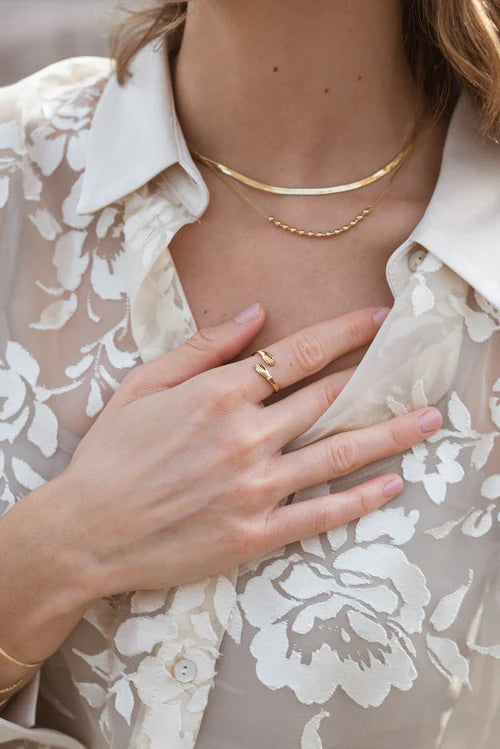 新作オリジナルリング「Assia」をぜひご覧ください!他の3ミクロンゴールドメッキを施した、繊細な調整可能なリングと合わせてお使いいただけます。